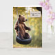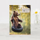 Ours Brown assis sur un pneu qui balance à l'arbre pour le 95ème anniversaire humoristique.