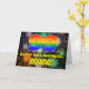 La façade de cette carte de voeux joyeuse et vibrante à thème d'anniversaire comporte un grand nombre de "99" avec un motif multicolore à spectre arc-en-ciel inspiré de dégradé, avec le message "HAPPY 99th BIRTHDAY," et un nom de destinataire personnalisé. L'arrière - plan du devant présente un motif audacieux et multicolore, inspiré de feux d'artifice festifs éclatants. L'intérieur a un message de voeux d'anniversaire personnalisable, ou peut-être peut-être être effacé et laissé vide si un message doit être écrit à la main à la place. Une carte de voeux d’anniversaire joyeuse et personnalisable comme celle-ci pourrait être utilisée pour célébrer le quatre-vingt-dix-neuvième anniversaire de quelqu’un. [~Z0000619]
