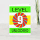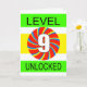 Carte de 9e anniversaire pour un joueur vidéo. N'importe quel joueur d'ordinateur aimera cette carte. Avec le slogan Niveau 9 Déverrouillé, ceci est sûr d'obtenir un grand sourire de quiconque aime jouer à des jeux d'ordinateur.