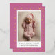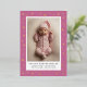 Célébrez l'arrivée de votre précieuse carte de faire-part de naissance moderne et élégante. Ce design magnifiquement conçu comprend une photo de portrait vertical de votre nouveau-né baigné dans la douce lueur de la lune de feuille métallique et des étoiles. La feuille crée une frontière éblouissante, ajoutant une touche d'élégance et de luxe à l'arrière - plan lilas. Personnalisez ce design céleste avec une photo de portrait vertical de votre nouveau-né et éditez facilement les modèles texte pour votre propre carte de faire-part bébé personnalisée.