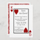 Rouge avec une police serif, De superbes invitations de mariage "save the date" idéales pour un mariage de casino à Las Vegas ou tout autre lieu. Caractéristiques carte à jouer ou thème de poker avec le roi et la reine de cœur. Ajoutez votre texte personnalisé à cette invitation de mariage personnalisée du roi et de la reine de cœur de Las Vegas.