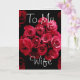 Une carte avec un beau bouquet de rose rouge qui peut être customisé avec le nom de votre femme fait une carte anniversaire unique. Tout le texte peut être customisé. Pour voir plus de mes cartes d'anniversaire, tapez ou collez dans la boîte de recherche de Zazzle : mariage de jaclinart