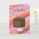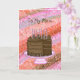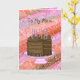 Carte d'anniversaire rose et Brown pour votre mère. Joli dessin à la main de gâteau au chocolat, bougies et cadeaux.