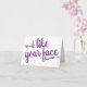 Carte à notes humoristique "J'aime votre visage"