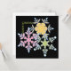 Une carte de voeux à plat avec des flocons de neige colorés.