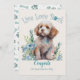 Célébrez la joie d'un nouveau membre de la famille à fourrure avec la carte d'adoption florale pour chien ! Ce magnifique design à l'aquarelle présente un adorable chiot entouré de fleurs vibrantes - parfait pour tout amateur de chiens. Le message joyeux « Aimez, vivez, aboyez » est sûr d'illuminer la journée de n'importe qui.