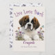 Célébrez la joie d'un nouveau membre de la famille à fourrure avec la carte d'adoption florale pour chien ! Ce magnifique design à l'aquarelle présente un adorable chiot entouré de fleurs vibrantes - parfait pour tout amateur de chiens. Le message joyeux « Vivre Aimer Aboyer » est sûr d'illuminer la journée de n'importe qui.