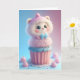 Carte Adorable petite chatte blanche préparant des cupca