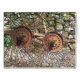Un dessin artistique d'un vieux râteau de foin abandonné.