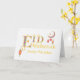 Une carte de voeux design pour l'Aïd, "Across the Miles". avec un contour de lettrage décoratif aux effets or et rempli de motifs islamiques aux couleurs vives. La couverture de l'accueil est : 'Aïd Moubarak. De l'autre côté des kilomètres ! ' Il y a une lanterne aux couleurs vives dans le coin inférieur gauche, suspendue sous la lettre "E" et une lune à motifs et une étoile dans le coin supérieur droit, avec deux lanternes supplémentaires et une étoile islamique suspendue de la lune. L'arrière - plan blanc sur le capot avant est légèrement texturé et le message intérieur est juste une suggestion que vous pouvez facilement changer ou supprimer si vous le souhaitez.