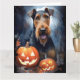 Carte Airedale d'Halloween avec citrouilles effrayantes