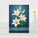 This religious Easter greeting highlights beautiful white Easter lilies arranged against a vibrant blue background that allows the flowers to stand out with clarity and grace. The front message Alleluia reflects the joyful proclamation celebrated throughout the Easter season as Christians rejoice in the Resurrection. Easter lilies have long been associated with the promise of new life and the hope of spring, making them a meaningful symbol for both Christian and Catholic Easter celebrations. The rich blue tones and classic floral imagery create an uplifting design suited for sharing faith and joy during this sacred holiday.