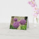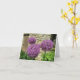 L'Allium (oignon ornemental) pousse à partir d'ampoules sur de grandes tiges et ont des têtes de fleurs rondes composées de dizaines de fleurs en forme d'étoile. Ils ne sont pas comestibles, mais leur odeur d'oignon les rend résistants aux animaux. En général, les fleurs sont violettes, mais il y a beaucoup d'autres couleurs (et tailles!), aussi; la plupart fleurissent au printemps, mais il y a aussi des fleurs automnales. Si vous avez une zone avec un sol sec ou sablonneux, ou si vous voulez garder les animaux loin des autres plantes, essayez Allium adorable. Ils se portent aussi bien dans les pots. Si vous plante un Allium violet comme celui-ci, la couleur représente un équilibre de bleu cool et de rouge énergique ; aussi le luxe, le pouvoir, la richesse et l'ambition, plus la créativité, la dignité, la dévotion et la magie. Donc si vous avez un ami qui a besoin d'une magie créative dans sa vie, un être aimé qui a besoin d'équilibre, ou qu'ils aiment le violet ou le jardinage, cette carte est pour vous !