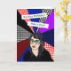 Carte d'amitié humoristique amusante pour dire Joyeux anniversaire. Jolie fille gothique aux cheveux bleus et arrière - plan pop art rétro.