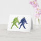 Carte de voeux Grape Friends. Une paire de grappes de raisin, une verte et une violette, marchent main dans la main. La tige du bouquet vert semble regarder le bouquet pourpre. La tige de raisin mauve retourne avec impatience le regard. Cette illustration crée une scène fantaisiste avec les caractéristiques humaines de l'amitié, de l'amour, de la gentillesse et de la tolérance alors que leurs pas rebondissants les transportent ensemble.
