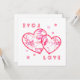 Carte de la Saint-Valentin avec deux cœurs et petites fleurs sur fond blanc