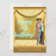 Drôle et funky 60ème anniversaire carte présente un découpage photo d'artiste costumé vintage avec un arrière - plan "scène" en or, neon aqua "Happy 60th Birthday" texte et texte en bas qui explique en 365 jours...cet anniversaire ne sera plus si spécial, alors profitez-en !