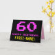 Le devant de cette carte de voeux d'anniversaire amusant, geek et nerdy comporte un grand numéro rose "60", ainsi que le message "HAPPY BANTHDAY," en rose, et un nom de destinataire jaune gras modifiable. Le texte a un aspect inspiré de celui de jeu vidéo classique de style 8 bits et de graphiques de jeux informatiques des années 1970 et 1980, et l'arrière - plan est en noir de couleur. L'intérieur comporte un message de voeux d'anniversaire customisé, ou peut-être pourrait-il être effacé et laissé vide si un message doit être écrit à la main à la place. Une carte d’anniversaire personnalisée comme celle-ci pourrait être une façon amusante d’envoyer un message célébrant le soixantième anniversaire de quelqu’un. [~Z0000478]