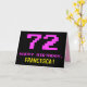 Le devant de cette carte de voeux d'anniversaire amusant, geek et nerdy comporte un grand numéro "72" et le message "HAPPY BANTHDAY", rose coloré, avec un nom de destinataire jaunâtre personnalisable. Le texte présente un look inspiré de celui de jeu vidéo et de jeu vidéo de style 8 bits vintage des années 1970 et 1980, et l'arrière - plan est noir de couleur. L'intérieur comporte un message de voeux d'anniversaire personnalisable, ou peut-être pourrait-il être effacé et laissé vide si un message doit être écrit à la main à la place. Une carte d’anniversaire personnalisable comme celle-ci pourrait être une façon amusante d’envoyer un message célébrant le soixante-douzième anniversaire de quelqu’un. [~Z0000478]