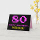 Le devant de cette carte de voeux d'anniversaire amusant, nerdy et geeky comporte un grand numéro rose "80", ainsi que le message "HAPPY BANTHDAY," en rose, et un nom de destinataire jaune gras personnalisable. Le texte a un look inspiré de celui de jeux vidéo et de jeux vidéo de style 8 bits classiques des années 1970 et 1980, et l'arrière - plan est noir de couleur. L'intérieur a un message de voeux d'anniversaire modifiable, ou peut-être peut-être être effacé et laissé vide si un message doit être écrit à la main à la place. Une carte d’anniversaire personnalisée comme celle-ci pourrait être une façon amusante d’envoyer un message pour célébrer le quatre-vingtième anniversaire de quelqu’un. [~Z0000478]