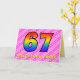 Ce design de carte de voeux de 67ème anniversaire, optimiste et festif, a une façade avec un grand numéro "67" avec un motif coloré inspiré de l'apparence d'un arc-en-ciel, sur un coeur rose clair et rose foncé forme des rayures arrière - plan motif. Le recto comporte également le message "Joyeux 67e anniversaire", suivi d'un nom de destinataire personnalisé. L'intérieur comporte un message de voeux d'anniversaire customisé, ou peut-être pourrait-il être effacé et laissé vide si un message doit être écrit à la main à la place. Une carte d’anniversaire personnalisable comme celle-ci pourrait être une façon amusante et heureuse d’envoyer un message pour célébrer le soixante-septième anniversaire de quelqu’un. [~Z0000418]