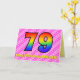 Ce design amusant et festif de carte de voeux de 79e anniversaire a un avant avec un grand numéro "79" ayant un motif coloré du spectre arc-en-ciel inspiré du gradient, sur un amusant rose foncé et rose clair du coeur formes motif rayé arrière - plan. Le recto comporte également le message "Joyeux 79e anniversaire", suivi d'un nom de destinataire modifiable. L'intérieur comporte un message de voeux d'anniversaire modifiable, ou peut-être pourrait-il être effacé et laissé vide si un message doit être écrit à la main à la place. Une carte d'anniversaire personnalisée comme celle-ci pourrait être une façon amusante et heureuse d'envoyer des voeux d'anniversaire à quelqu'un qui célèbre son soixante-dix-neuvième anniversaire. [~Z0000418]