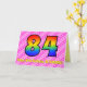 Ce design de carte de voeux de 84ème anniversaire heureux et amusant a un avant avec un grand numéro "84" ayant un motif coloré inspiré par l'aspect d'un arc-en-ciel, sur un coeur rose clair et rose foncé forme des bandes arrière - plan motif. Le recto contient également le message "Joyeux 84e anniversaire", ainsi qu'un nom de destinataire modifiable. L'intérieur comporte un message d'anniversaire personnalisé, ou pourrait être effacé et laissé vide si un message doit être écrit à la main à la place. Une carte d'anniversaire personnalisable comme celle-ci pourrait être une façon amusante et heureuse d'envoyer des voeux d'anniversaire à quelqu'un qui célèbre son quatre-vingt-quatrième anniversaire. [~Z0000418]
