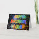 Ce design de carte vibrant, multicolore et d'amusement d'anniversaire de salutation comporte le message "JOYEUX ANNIVERSAIRE," et le prénom commun "LIAM" avec les lettres ayant un spectre coloré d'arc-en-ciel comme le motif de coloration de gradient. L'arrière - plan de l'avant comporte également un motif inspiré par feux d'artifice de éclatement coloré. Les caractéristiques intérieures un message de salutation customisé, ou pourraient peut-être être dégagées et sont parties du blanc si un message doit être écrit à la main à la place. Une carte de voeux d'anniversaire comme ceci pourrait être une manière d'amusement de reconnaître l'anniversaire de quelqu'un Liam appelé. [~Z0000350]