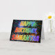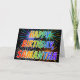 Ce design de carte vibrant, multicolore et d'amusement d'anniversaire de salutation comporte le message "JOYEUX ANNIVERSAIRE," et le prénom commun "SAMANTHA" avec les lettres ayant un spectre coloré d'arc-en-ciel comme le motif de coloration de gradient. L'arrière - plan de l'avant comporte également un motif coloré inspiré par l'aspect d'éclater les feux d'artifice de célébration. Les caractéristiques intérieures un message de salutation personnalisé, ou pourraient peut-être être dégagées et sont parties du blanc si un message doit être écrit à la main à la place. Une carte de voeux d'anniversaire comme ceci a pu être amusement pour donner à quelqu'un Samantha appelée sur leur anniversaire. [~Z0000350]