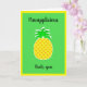 Pineappleicious est une carte de jour valentines amusante pour toute personne qui aime les ananas. Il est décoré avec un ananas de style dessin animé et l'intérieur peut être customisé avec votre nom et votre salutation. La carte a un arrière - plan vert avec une bordure jaune et l'ananas est dans les tons jaune et vert.