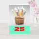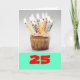 Carte d'anniversaire pour quelqu'un qui a 25 ans. À l'intérieur de la légende "heureux quart d'homme centenaire."