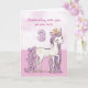 Cette jolie carte apportera un oh et un ah à une fille spéciale pour son 3ème anniversaire quand elle verra ce poney rose et blanc portant une couronne avec une touche d'étincelle dorée sur sa crinière, sa queue et sa couronne. Jolie carte pour souhaiter un joyeux 3ème anniversaire à une fille !