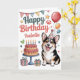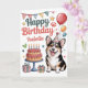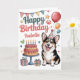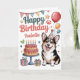 Cette adorable carte d'anniversaire de chien de corgi personnalisée comprend un dessin de chien d'aquarelle mignon, ainsi qu'un gâteau d'anniversaire et des décorations d'anniversaire. L'avant des cartes d'anniversaire comprend un endroit où vous pouvez personnaliser avec votre nom ainsi que les mots "Joyeux anniversaire". Le message à l'intérieur de la carte dit : "J'espère que votre anniversaire est extraordinaire !"