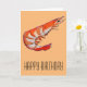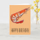 Carte d'anniversaire avec l'illustration tirée par la main d'une crevette rose ou d'une crevette par l'artiste pour aquarelle Sacha Grossel. Cette illustration vibrante orange mignonne de cet animal crustacéen marin dépeint une crevette ou une crevette rose sur un fond entièrement personnalisable. Très mignon, original et kitsch. Pour des amants de fruits de mer partout. Le texte est personnalisable