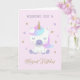 Carte magique d'anniversaire de licorne pour les filles! Conçu avec des parties scintillant roses et dorées. Illustration et design par Namibear Art Studio. ©Namibear