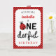 Carte de voeux d'anniversaire une petite coccinelle tournant un ! Ajoutez le nom de la fille d'anniversaire sur la couverture de carte de voeux dans un manuscrit assez rouge. La carte d'anniversaire mignonne comporte une conception de typographie d'amusement avec le calembour "anniversaire onederful" où l'o dans un a été remplacé par une coccinelle !