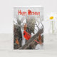 Cardinal masculin dans l'arbre d'hiver avec voeux d'anniversaire.