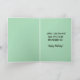 Cette drôle de carte d'anniversaire présente l'illustration d'un tigre tenant une enveloppe contre un arrière - plan vert. Il y a un message au-dessus de lui et un message à l'intérieur de la carte, aussi. Alors, anticipez et changez les mots sur l'avant et à l'intérieur ainsi que la taille de police, le style et la couleur. Les couleurs arrière - plans à l'intérieur et à l'arrière peuvent également être modifiées. Cette carte polyvalente peut être utilisée pour les anniversaires, anniversaires, etc. Profitez de votre nouvelle carte d'anniversaire de tigre drôle et modifiable!