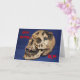 Un vieux crâne avec un fond bleu qui est sur une carte d'anniversaire.