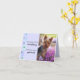 Une photo colorée d'un Yorkshire Terrier dans un jardin fleuri orne le devant de cette carte. Arrière - plan bleu clair avec un design rétro et texte qui dit : "Vieillir est obligatoire Growing up est facultatif". Dans le texte personnalisable : "Je vous souhaite un joyeux anniversaire".