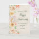 Bonne carte d'anniversaire mariage pour mère et père avec élégante aquarelle pastel fleurs et la verdure printanière et un motif en bois rustique.