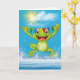 Grenouille verte avec bannière d'anniversaire sautant d'eau bleue sur l'arrière - plan du ciel pour un anniversaire.