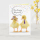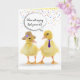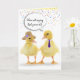 De mignons canards jaunes avec une bulle de discours et confettis de fête sur un arrière - plan blanc pour l'anniversaire du couple. Le canard porte une ficelle de perles et un bonnet. Le canard porte une cravate rayée violette et blanche. Tout le texte peut être modifié.