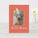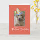 La carte est pour un anniversaire tardif et montre un drôle de chien de récupération d'or léchant ses côtelettes en pensant à ce gâteau d'anniversaire restant. Grande carte humoristique à donner à l'amoureux des chiens!
