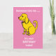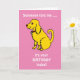 Carte rose avec l'image de type dessin animé d'un mignon chien heureux avec les mots "Quelqu'un m'a dit ... c'est votre anniversaire aujourd'hui". A l'intérieur de la carte on peut lire "Avoir un joli anniversaire". Personnalisez facilement cette carte en modifiant le texte modèle. Merci d'avoir vu mes dessins.