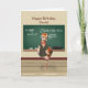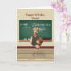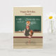 Un oiseau de grue de sandhill de bébé est habillé en tant que professeur de physique. Dans cette image humoristique sur une carte d'anniversaire pour un oncle l'oiseau porte des verres, une cravate d'arc, et un gilet brun accompli une chaîne de montre d'or donnant l'aspect d'un professeur ou d'un étudiant très sérieux. Il se tient devant un panneau de craie vert rempli d'équations scientifiques. Tous les gisements des textes sont des modèles des textes et facilement changé ou supprimé.