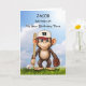 Faites de son anniversaire une course à domicile avec cette carte de baseball entièrement personnalisée ! Doté d'un singe ludique tenant une chauve-souris et un gant, ce design amusant est parfait pour un jeune fan de baseball. Customisez à la fois le front avec son nom et son âge, créant un souvenir unique juste pour lui. Une façon fantastique de célébrer un garçon amateur de sport de tout âge avec une carte aussi spéciale qu'il est !