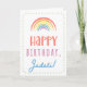 Tu appelles ta grand-mère Jadati, pas grand-mère. (Jadati signifie grand-mère en arabe.) Imaginez combien Jadati sera excité de recevoir une carte d'anniversaire qui lui sera adressée en particulier ! Votre jadati va aussi adorer le design de l'arc-en-ciel boho, mignon et d'inspiration aquarelle de cette carte qui dit "Joyeux anniversaire Jadati!" Rendre cette carte personnalisable ! Cliquez sur "Edit Design", "Inside Bottom/Right : Text & Images", "Text" et "Add text" pour écrire votre propre message personnalisé à Jadati à l'intérieur !