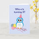 Un hibou mignon de bande dessinée avec un casquette de partie, et tenir le pastel trois a coloré des ballons. Cette carte a le texte pour trois ans, mais elle est personnalisable pour n'importe quel âge. Vous pouvez ajouter le nom de l'enfant d'anniversaire aussi bien. Le texte est personnalisable sur la carte entière.