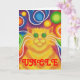 Super bébé ! Un chat rayé jaune et orange avec des fouets tourbillonnants et un arrière - plan psychédélique à motif arc-en-ciel. Carte de voeux avec un design personnalisable jaune, orange, rouge, bleu, vert, rose, violet et blanc pour vous permettre de personnaliser avec votre propre texte, images et idées.Un dessin original numériquement crayon coloré amélioré par Jess Perry.